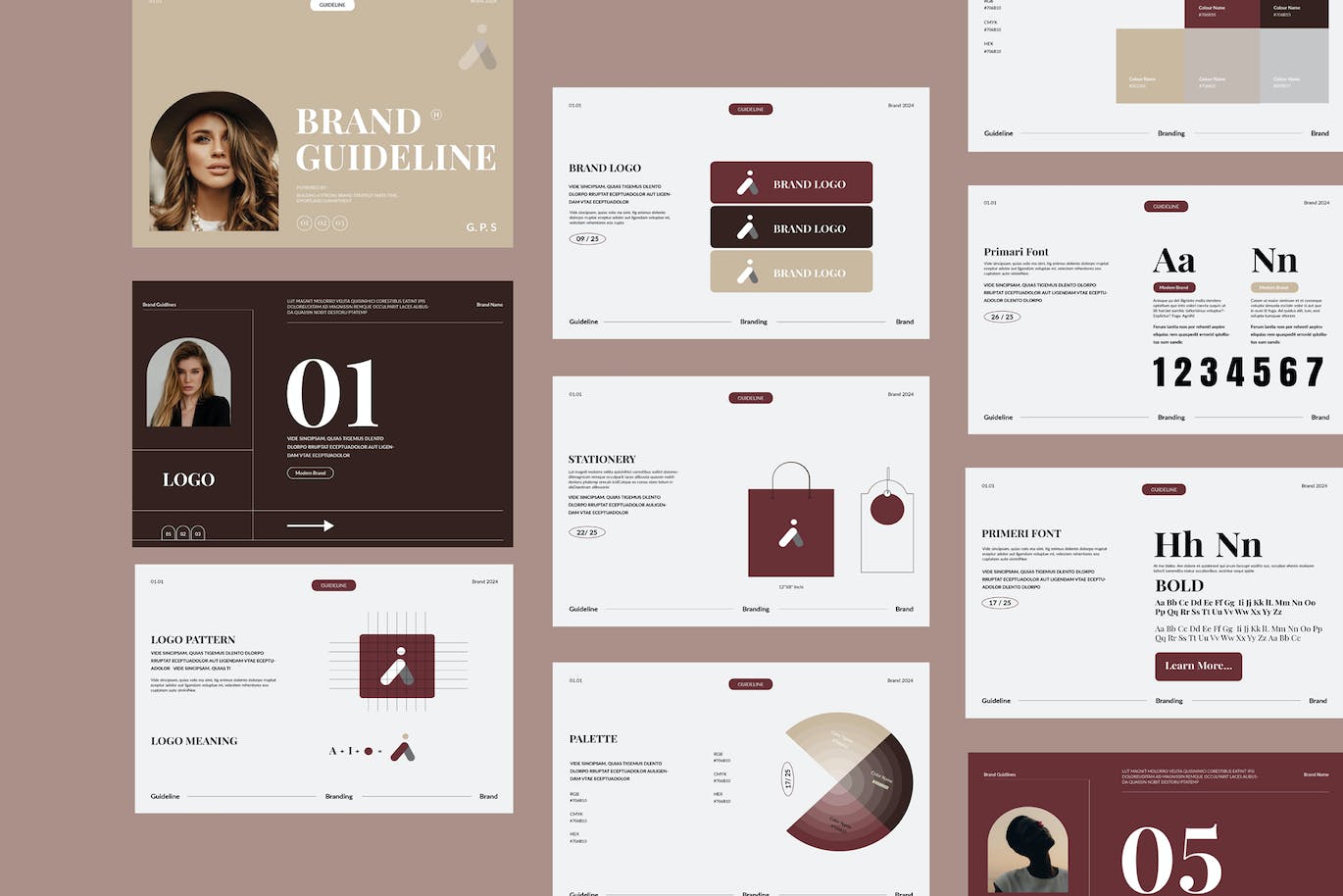 这个品牌指南模板太实用啦,内容全且灵活,色彩排版也很棒,爱了!