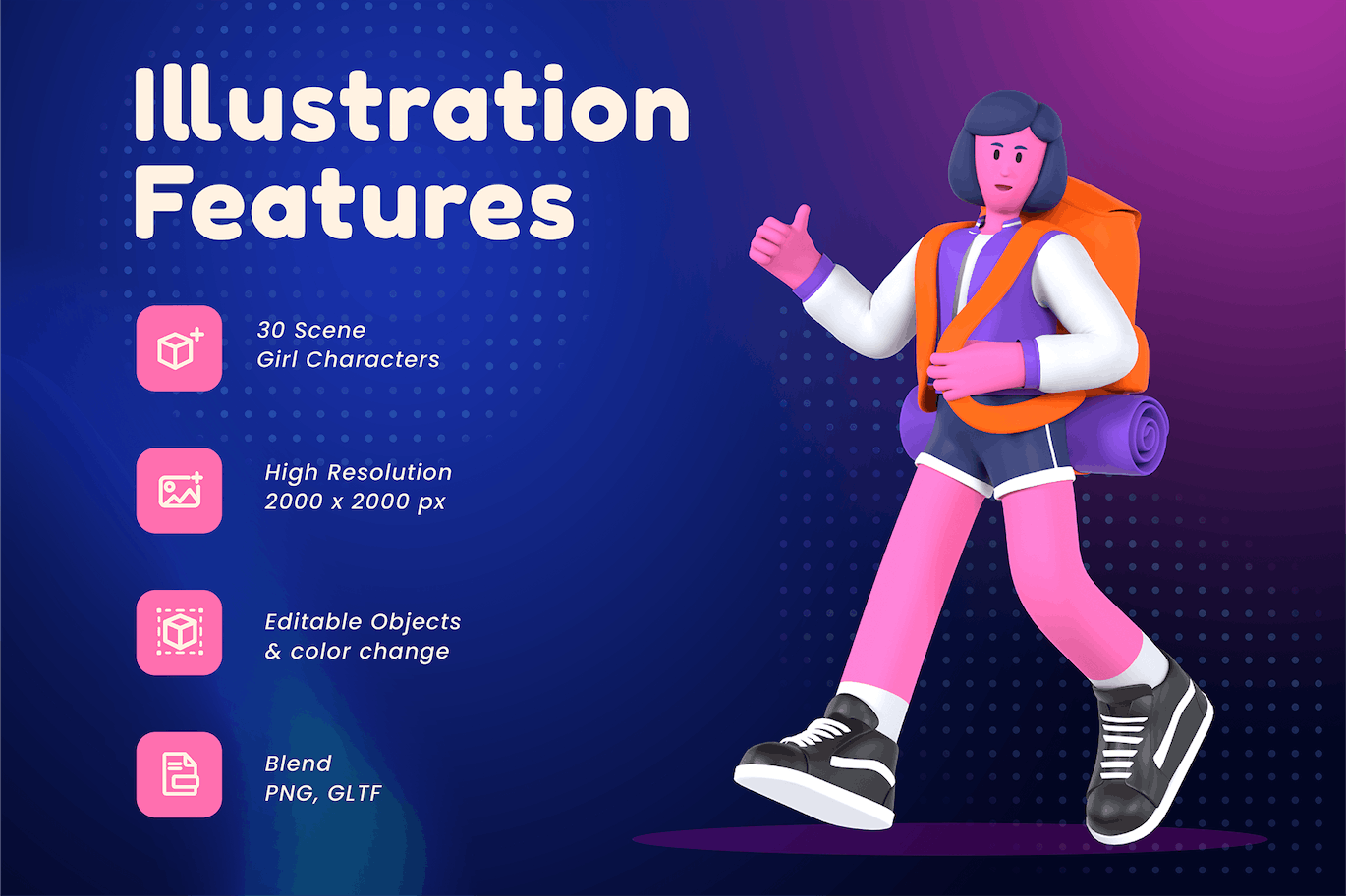 旅行女孩 3D 插图 (PNG,Blend)