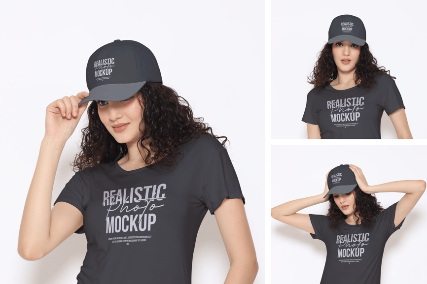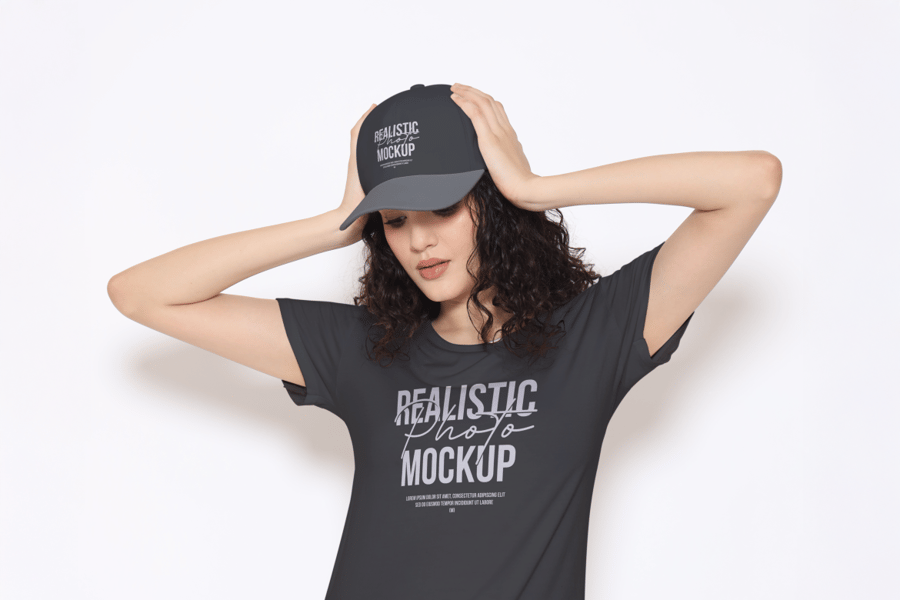 通过这款**T恤和帽子样机**,以无与伦比的优雅展现您的设计。精准的细节和高分辨率,让您作品的每一个像素都光彩夺目,散发出专业感和惊艳的视觉效果。非常适合希望以高端风格展示作品集的人士。