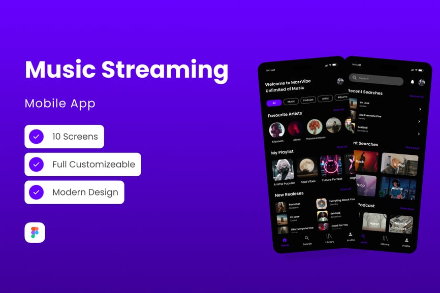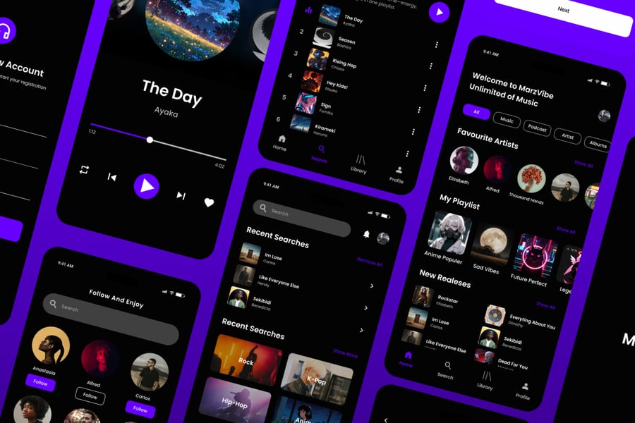 MarzVibe 拥有时尚现代的设计,提供尖端的音乐流媒体体验。其直观的界面让用户轻松探索和欣赏自己喜爱的曲目。对于致力于打造充满活力、引人入胜、能够与用户品味和氛围产生共鸣的音乐应用的开发者来说,MarzVibe 是理想之选。