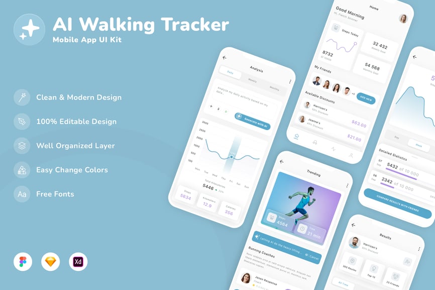 该 UI 套件采用现代设计趋势设计。