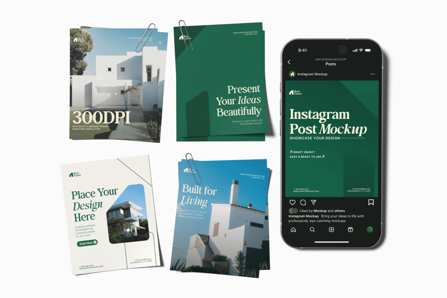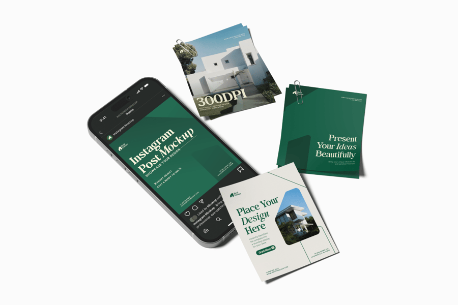 **无论您是要制作客户演示文稿、策划内容预览,还是推广新活动**,这款模型都能让您轻松同时展示多篇 Instagram 帖子。凭借逼真的布局和更新的帖子比例,您的设计将脱颖而出,精美绝伦,随时可用。
