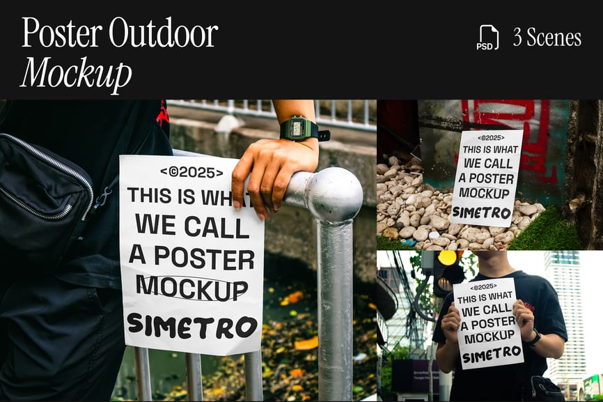 海报户外模型是一款逼真的模板,可在真实的户外环境中展示您的海报设计。该模型包含三个不同的场景,非常适合以专业且引人注目的外观展示品牌项目、活动海报、街头艺术或促销设计。凭借其高分辨率质量和易于使用的 PSD 智能对象,您只需单击几下即可插入您的作品。非常适合希望在真实的城市环境中展示海报并发挥最大影响力的平面设计师、创意机构和品牌。