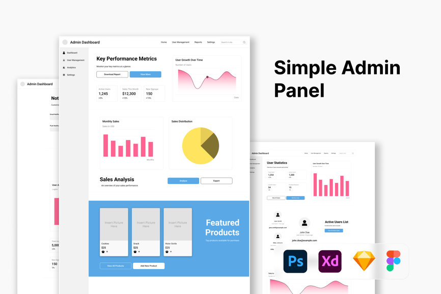 隆重推出“简易管理面板”模板,这是一款简洁、现代且功能多样的 UI 模板,旨在加速 Web 应用后端的开发。该模板注重简洁性和数据可视化,提供构建美观直观的用户界面所需的所有基本组件。