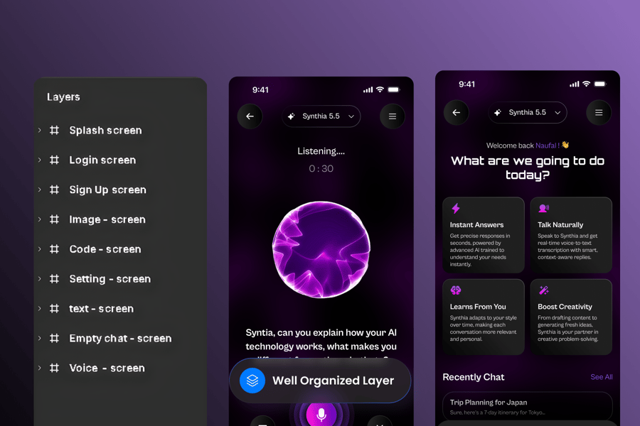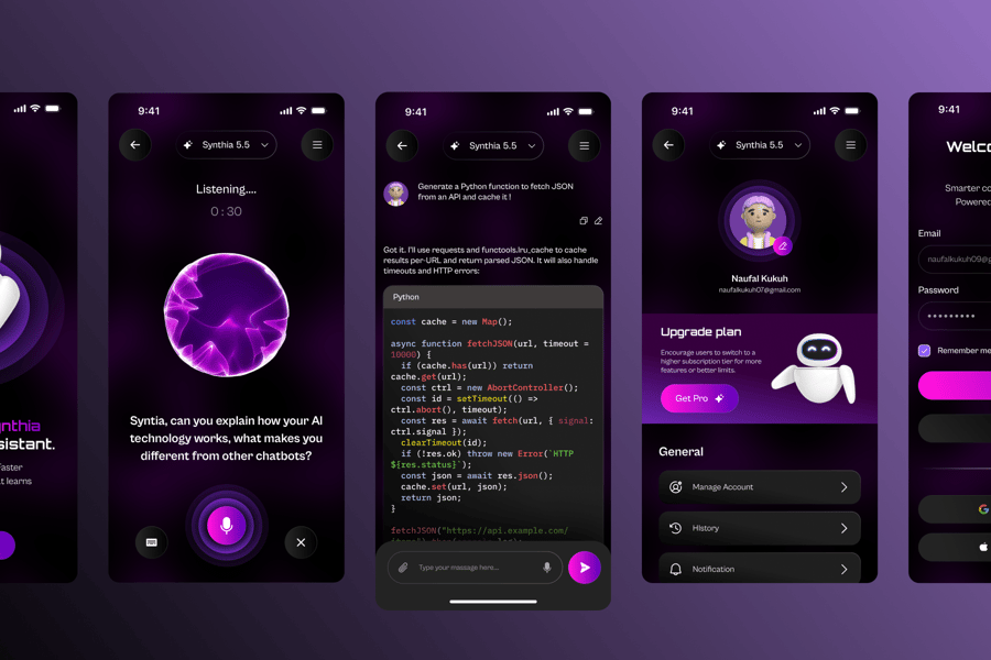 Synthia 提供简洁易用的界面,并配备智能建议和富媒体支持,确保快速直观的沟通。体验未来的聊天方式!