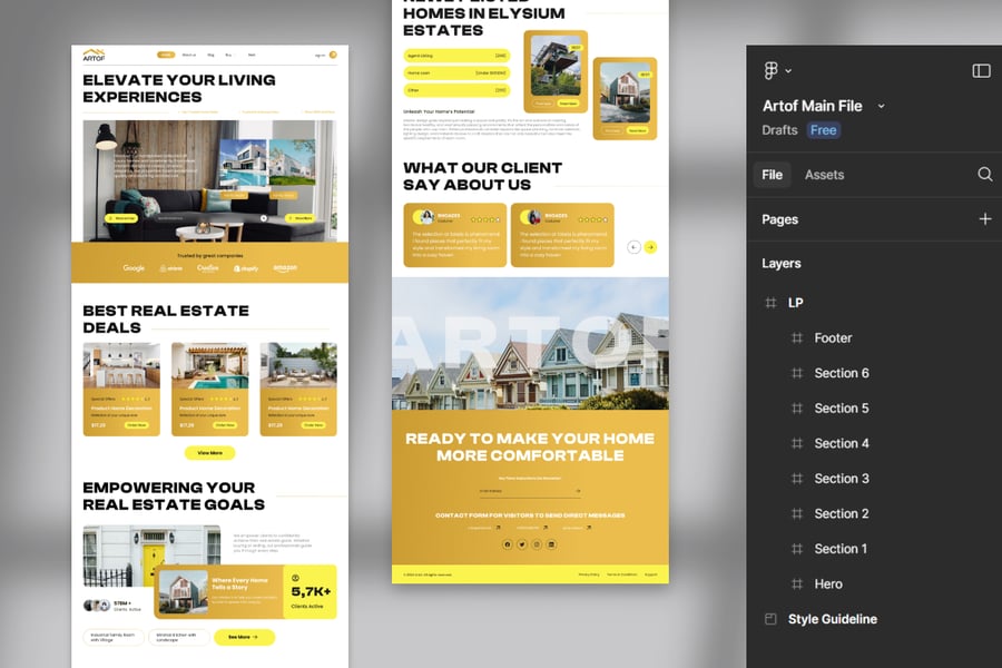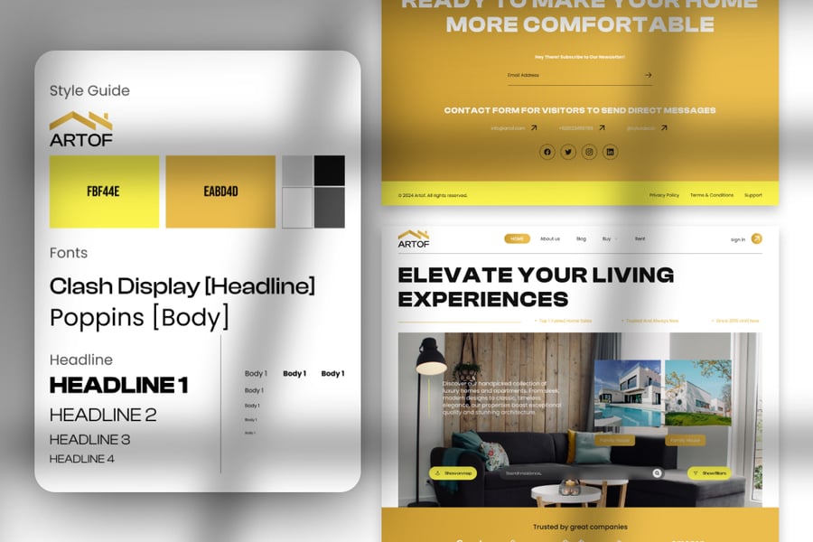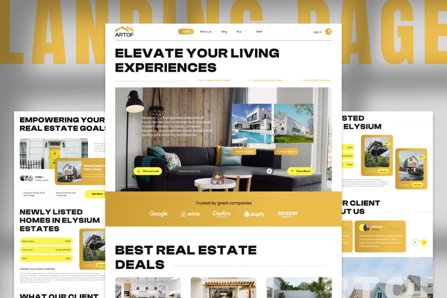 Artof – 房地产登陆页面是一款现代化的 UI 模板。我们的模板完全可定制,您可以根据项目需求,添加自己的品牌内容、字体和颜色。