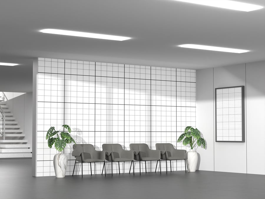 使用此**办公室墙壁模型**在现代且具有影响力的环境中展示您的徽标或品牌,非常适合在逼真的室内环境中展示公司形象、标牌设计或企业视觉演示。
