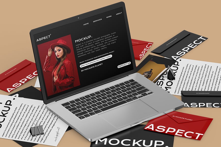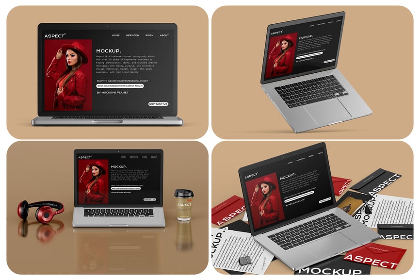 使用这款高品质 MacBook Pro 16 英寸模型套件,展示您的 UI/UX 设计、网站演示或品牌形象。该套件以时尚逼真的 Apple 笔记本电脑为原型,包含四个动态视图,可从多个角度展示您的作品。