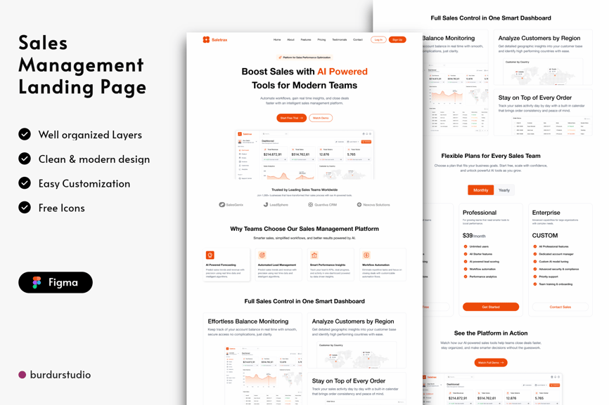 **适用于 B2B 销售团队的极简销售管理登陆页面模板**