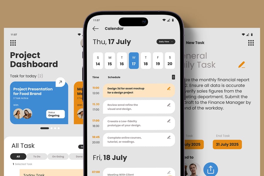 **Zenith** 是一款用于数字日常计划管理项目的任务规划器移动应用程序,由于其矢量形状和组织良好的图层,易于编辑、自定义和调整大小。