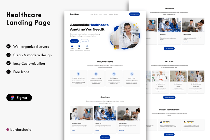 **此模板是一个简洁却专业、现代的网站。**您可以在 Figma 中编辑它。轻松插入内容、更改颜色,所有模板均已包含,可随时与您的受众分享。完全兼容、可编辑且像素完美。此外,它们组织有序,命名和分组都经过精心设计。