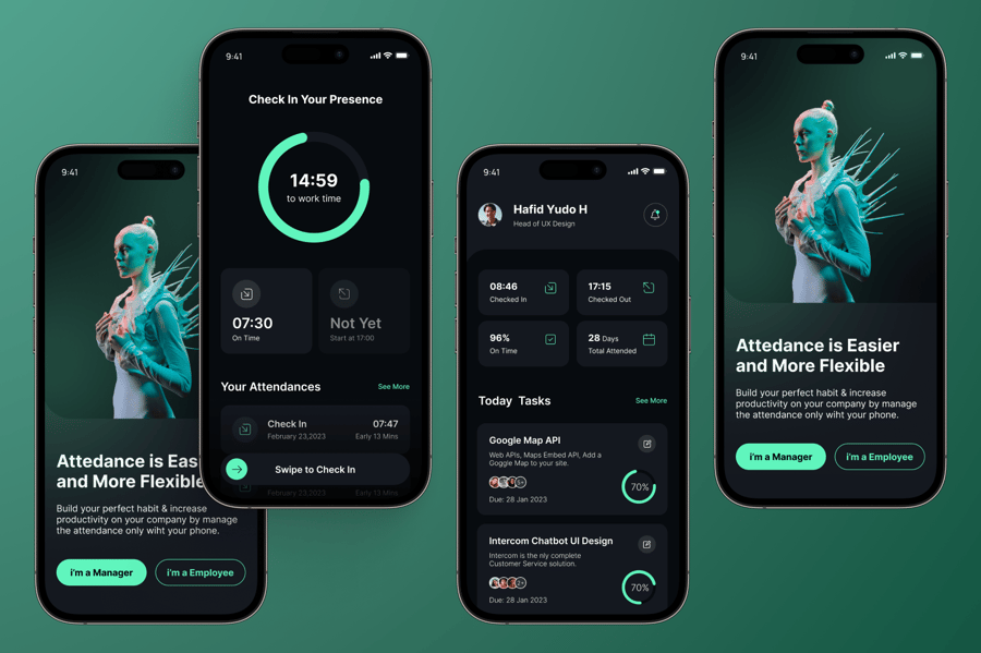 专为学校、公司和组织打造的实用移动 UI 套件,用于高效追踪考勤。它包含结构化的界面,用于清晰地记录、报告和管理参与者。
