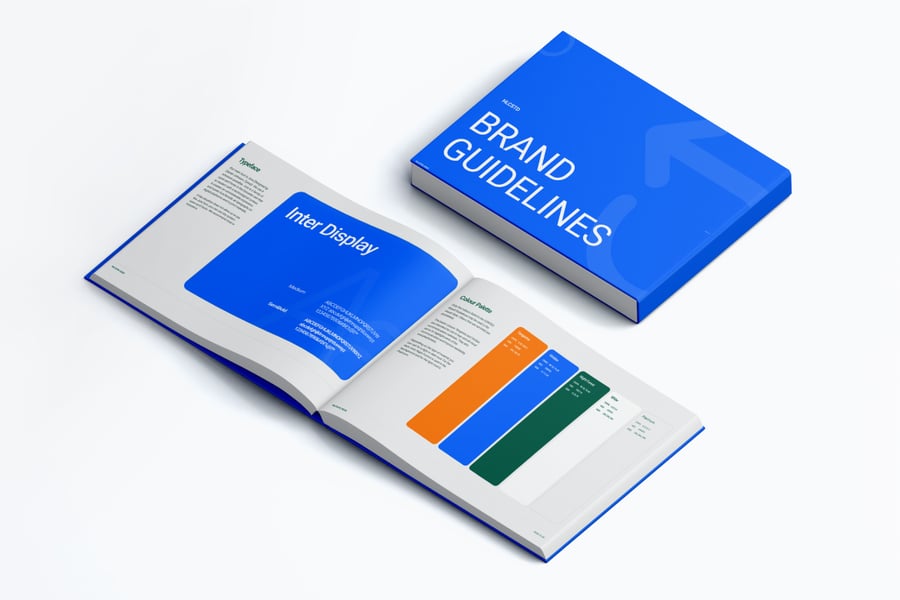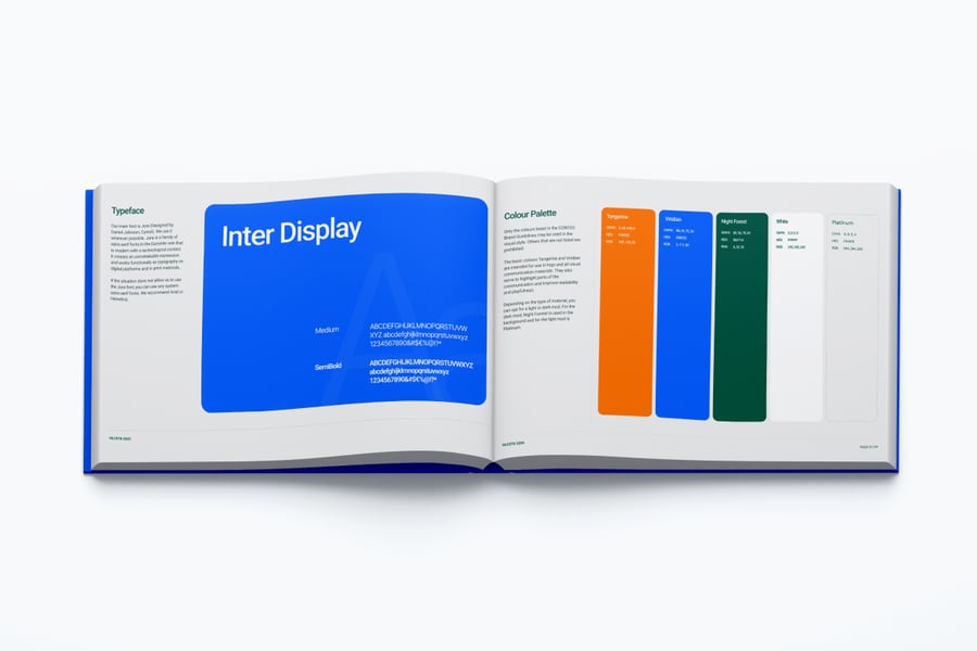 这款**品牌指南样机**专为创意工作室、设计师和营销专业人士设计,帮助他们以简洁、逼真、专业的布局展示视觉识别系统,助您打造品牌形象。这款样机制作精良,以令人惊叹的细节突出了字体排印、徽标位置、配色方案和布局构图。