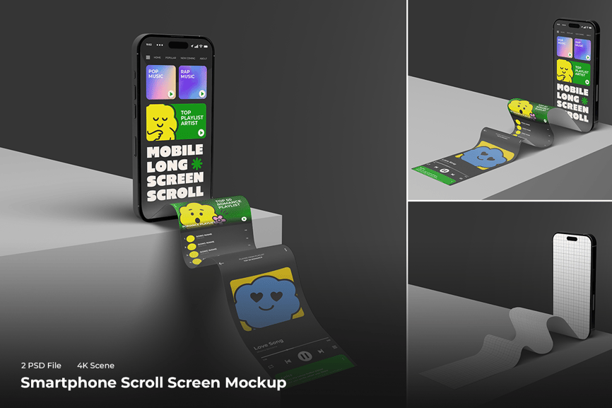 使用这款 iPhone 长卷轴模型展示您的应用设计——这是一款时尚逼真的模板,旨在以专业的方式突出长屏卷轴、移动 UI 或产品演示。该模型拥有两个独特的视角,非常适合以现代且引人注目的风格展示应用、原型或数字内容。