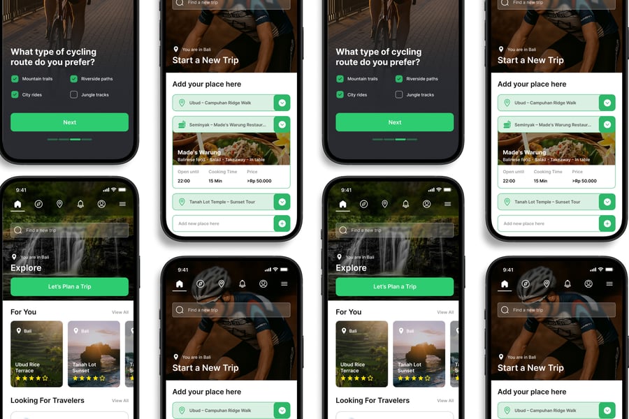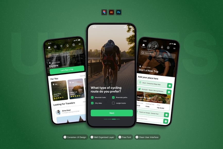 隆重推出 **Cycling Time** 移动应用 UI 套件,这是一款现代化且功能全面的解决方案,可助您创建简洁易用的应用界面。对于希望加快设计流程的设计师和开发者而言,这款 UI 套件堪称完美之选,它将您所需的所有基本组件整合在一个井然有序的软件包中。