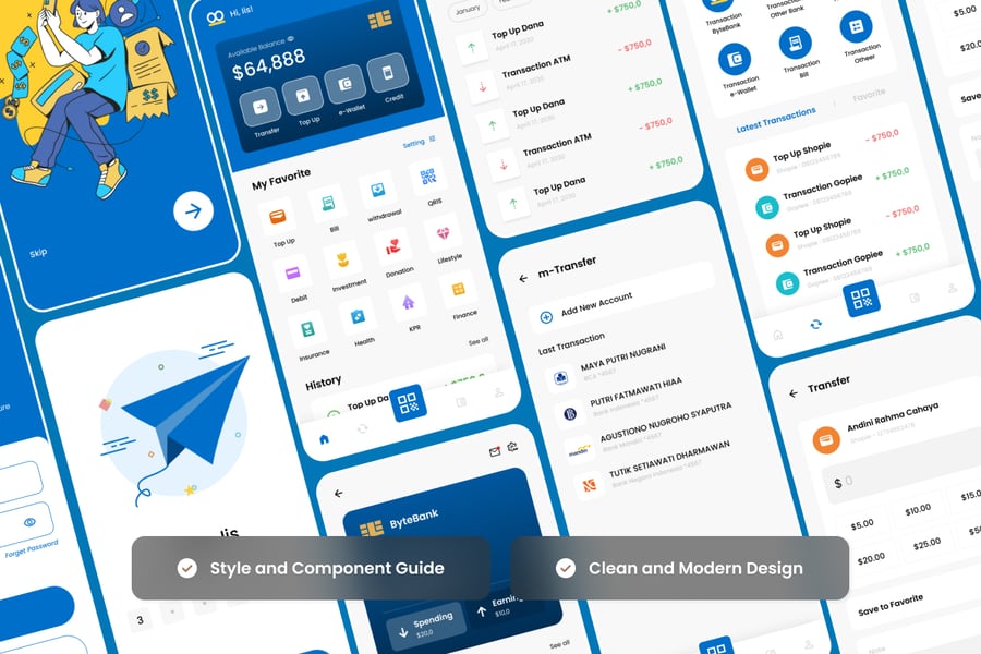 ByteBank 为数字银行提供了一套创新的 UI 套件,将时尚直观的设计与动态渐变色系融为一体。它非常适合金融科技初创公司和金融服务机构,拥有简洁的导航、现代的无衬线字体和极简的图标,让您在每次交易中都充满信心。