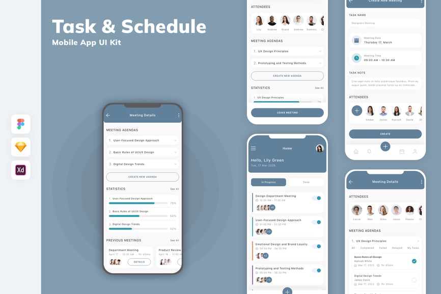 当前位置:首页UI素材Ui Kits任务和日程安排移动应用 UI 套件