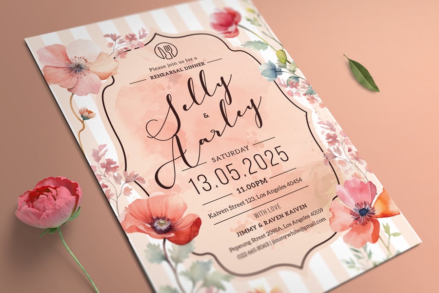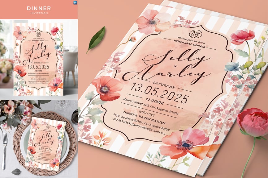 鲜花晚宴邀请函,可用于您的晚宴、婚礼、订婚等。非常容易编辑!