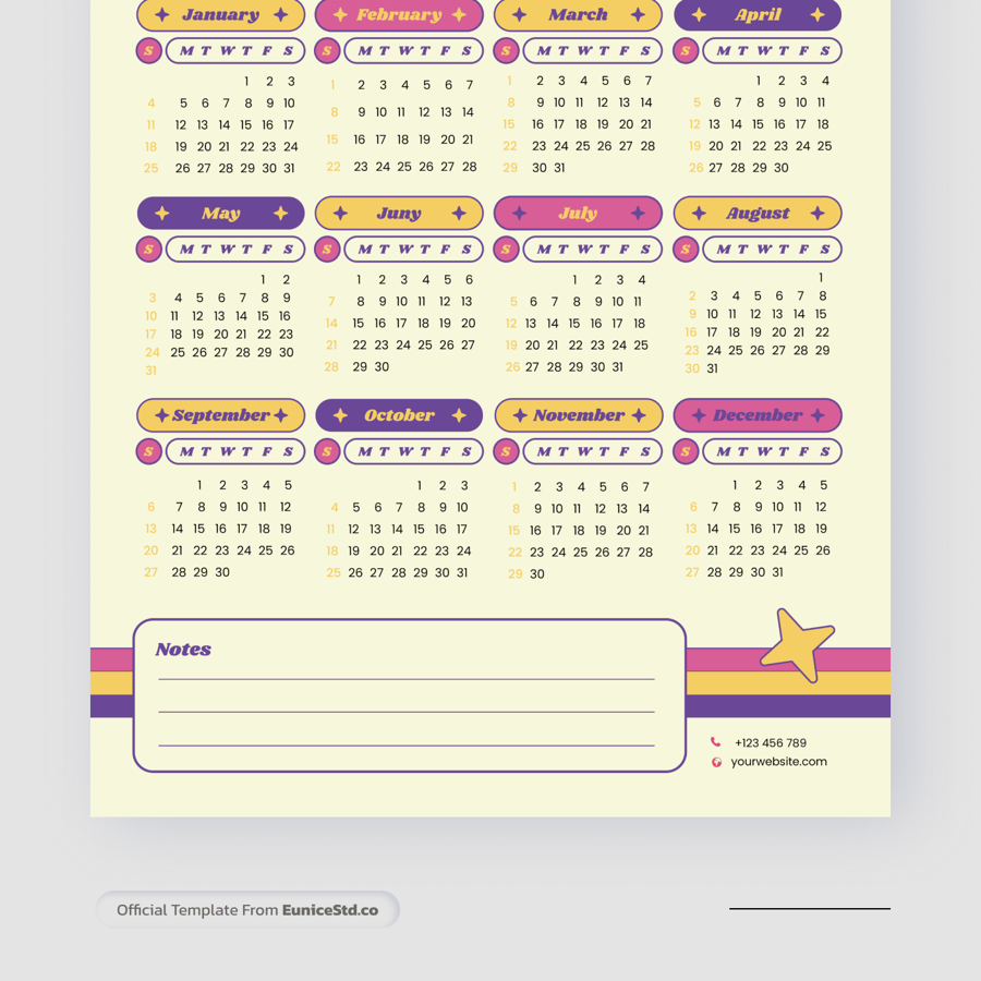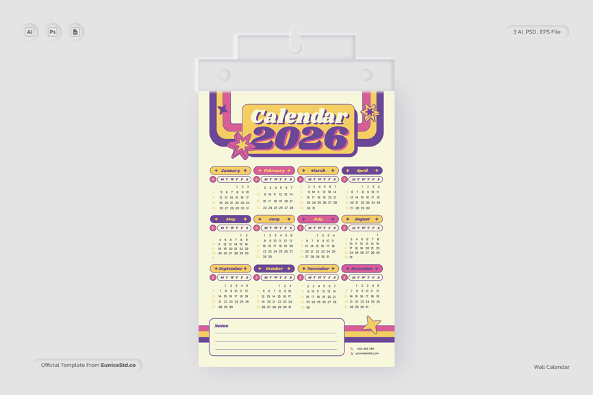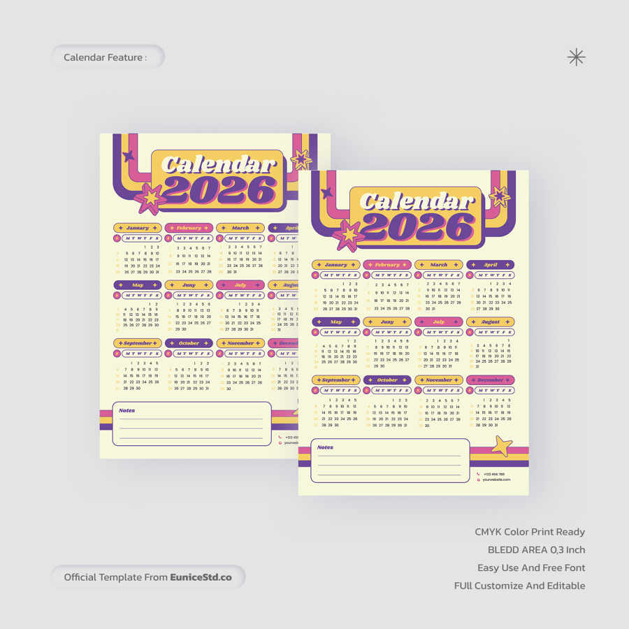 此模板完全可编辑,以适合您的颜色和字体。以及挂历,以专业的方式展示您的日历设计、公司、代理商、品牌等。