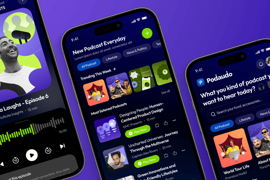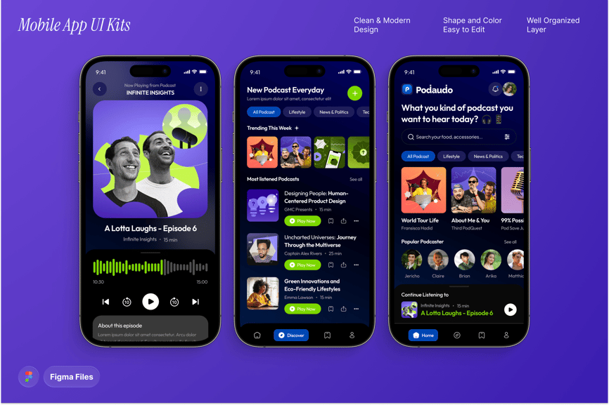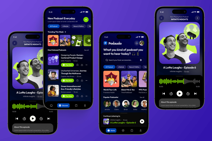 **Podiaudio – 播客应用程序移动 UI 套件**