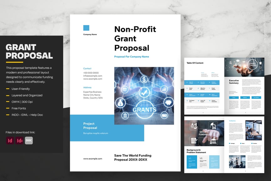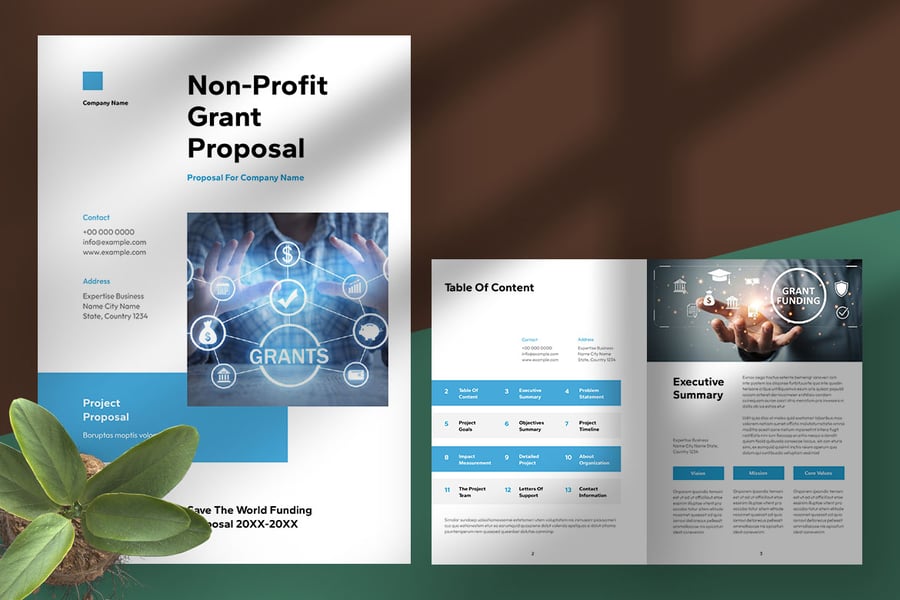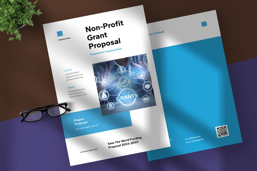 **简洁的蓝色点缀非营利性拨款提案**
