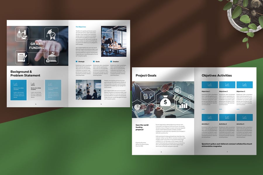 此提案模板采用现代专业的布局,旨在清晰有效地传达资金需求。它采用蓝白相间的简洁组合,传达了信任、透明和可信度——这些品质对于寻求资助的非营利组织至关重要。该设计包含结构良好的部分,例如执行摘要、项目目标、实施计划和团队简介,使捐赠者和利益相关者能够轻松理解该计划的愿景和影响。其简约而优雅的风格确保了可读性,同时保持了精致的企业形象,非常适合慈善、社会和人道主义项目。