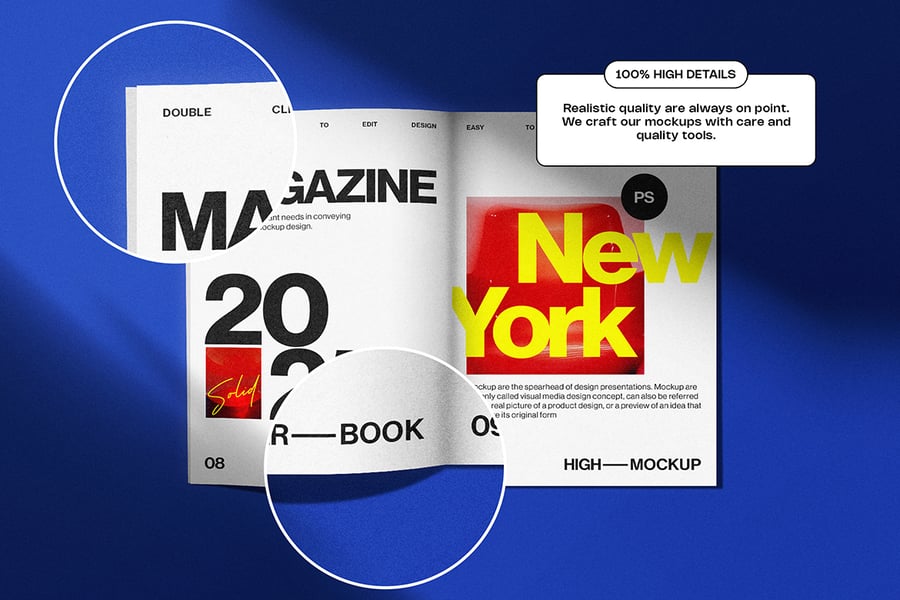 这款现代杂志样机拥有逼真的纹理、光影反射和柔和的阴影,呈现出栩栩如生的编辑效果。其布局兼具简约设计和专业质感,是展示杂志封面、内页或产品目录的理想之选。对于希望在触感舒适、简洁专业的环境中展示作品的品牌代理公司、出版商和设计师而言,这款样机堪称完美之选。它能为任何印刷出版物营造强烈的视觉冲击力和细节表现力。