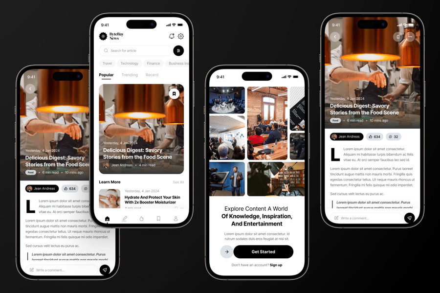专为数字新闻、博客和杂志平台打造的简洁现代的移动界面。该工具包可帮助开发者和创作者构建引人入胜的阅读体验,提供直观的导航、流畅的内容布局和清晰的字体,从而提升可读性。对于希望在各种设备上动态呈现信息并保持专业视觉形象的媒体创业公司、在线出版商和独立撰稿人来说,它是理想之选。