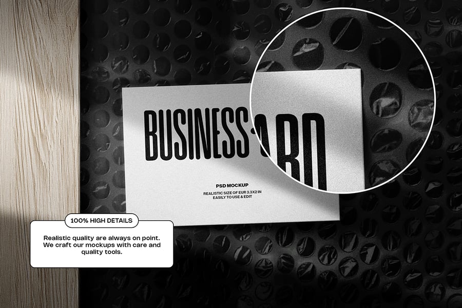 一款高质量、逼真的名片样机,背景颜色可编辑,并具备智能对象功能,方便快速放置设计元素。非常适合用于品牌展示、企业形象设计和专业文具展示。