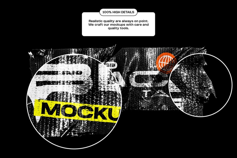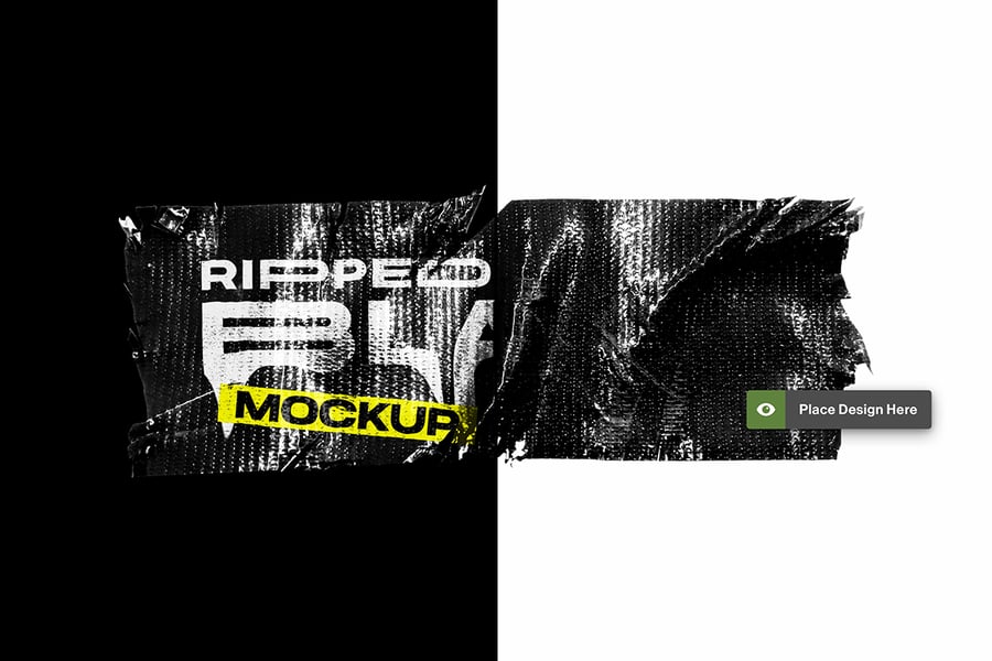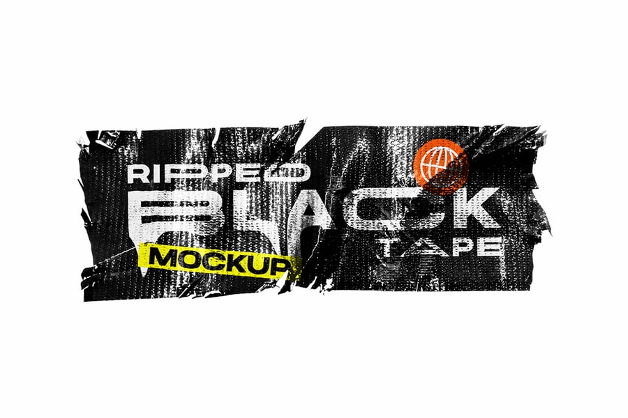 一款高质量的撕裂黑色胶带模型,具有精细的纹理和自然的阴影,非常适合为海报或品牌视觉效果增添逼真的效果。