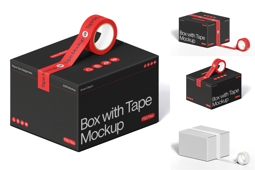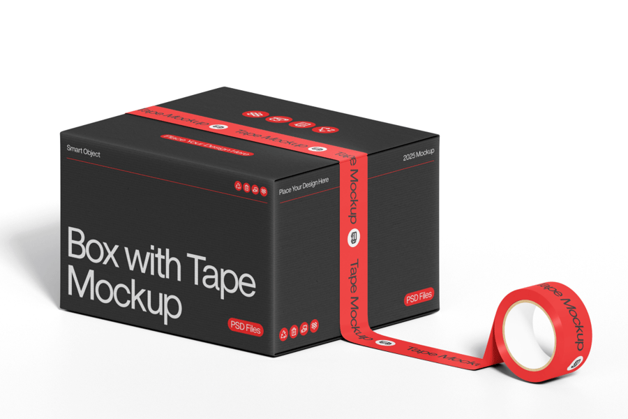 使用这款胶带盒样机套装,以简洁逼真的方式展示您的包装设计。该模板专为创意专业人士设计,是展示品牌、产品标签或包装概念的理想之选,能够呈现精致的效果。它包含高分辨率 PSD 文件和智能对象图层,您可以轻松自定义盒子和胶带设计,以满足您的项目需求。