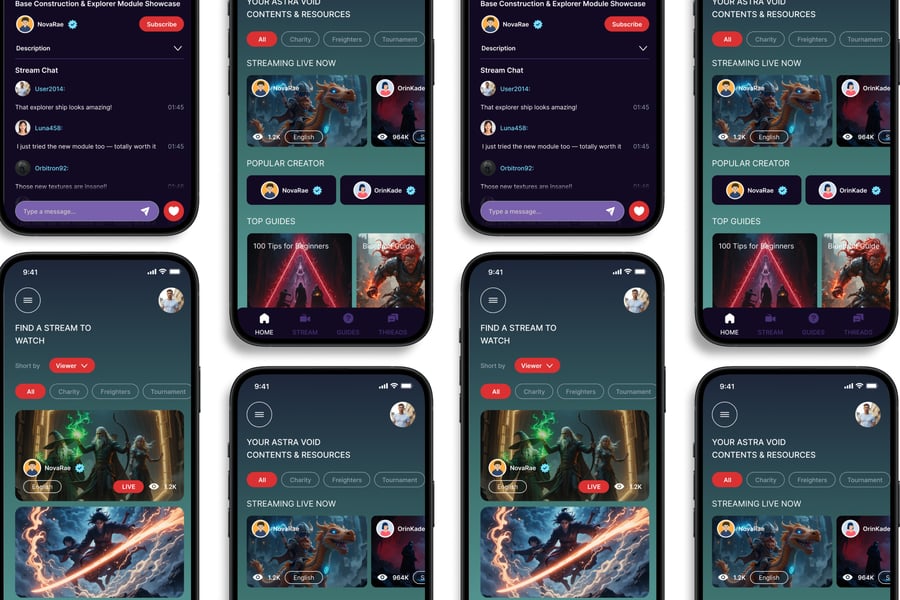这款**游戏串流** UI 套件的设计重点在于易用性和一致性,让您轻松创建美观实用的移动应用。每个元素都经过精心设计,完全可定制,并可根据您的品牌进行适配。无论您是设计社交应用、电商应用还是效率工具,这款套件都能让您灵活地将创意变为现实。