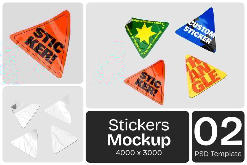 使用这款**三角形贴纸样机**展示您的创意贴纸设计,专为产品品牌推广、标签和包装视觉效果而设计。**非常适合用于文具、工艺品或促销品牌展示。**