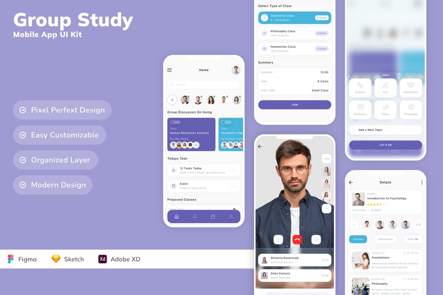 每个屏幕都可完全自定义,易于使用,并针对 Figma、Sketch 和 Adobe XD 进行了精心设计。