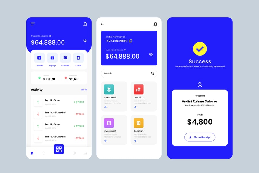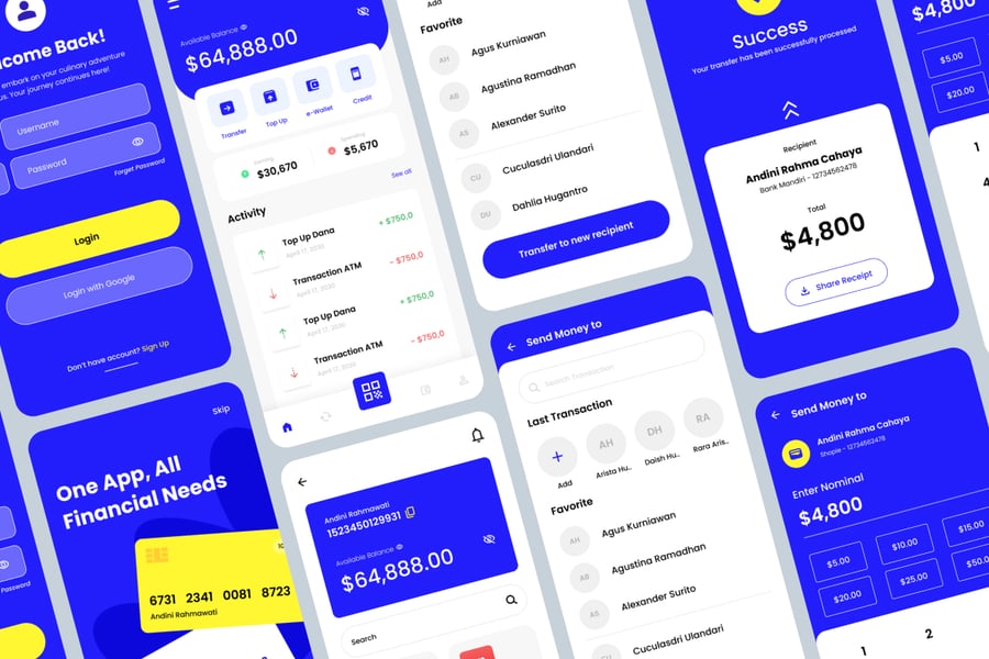 EzyPay 是一款高效的数字银行应用 UI 套件,它将现代简约的设计、流畅的导航和一流的安全性完美结合。其充满活力的渐变色调和清晰的无衬线字体,营造出值得信赖且富有创新性的界面,是金融科技解决方案和移动金融应用的理想之选。