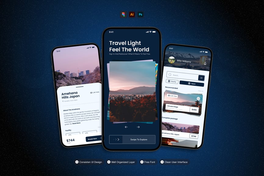隆重推出 **Travel Lantern** 移动应用 UI 套件,这是一款现代化且功能全面的解决方案,可助您创建简洁易用的应用界面。对于希望加快设计流程的设计师和开发者而言,这款 UI 套件堪称完美之选,它将您所需的所有基本组件整合在一个井然有序的软件包中。