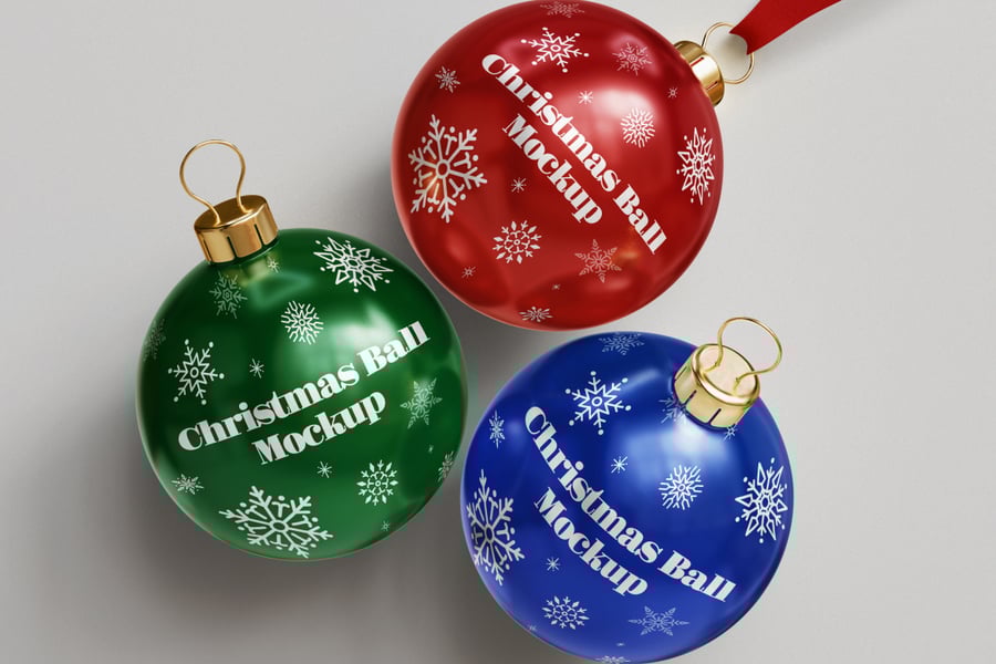 每个模型都包含逼真的圣诞球,有红色、蓝色和绿色三种颜色可选,并配有反光表面、金属帽和悬挂的丝带。非常适合用于节日品牌推广、包装设计、季节性产品广告或圣诞贺卡视觉效果。