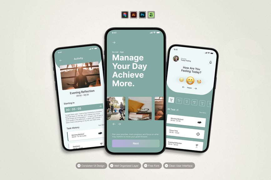 隆重推出 **待办事项活动** 移动应用 UI 套件,这是一款现代化且功能全面的解决方案,可帮助您创建简洁易用的应用界面。对于希望加快设计流程的设计师和开发者而言,这款 UI 套件堪称完美之选,它将您所需的所有基本组件整合在一个井然有序的软件包中。