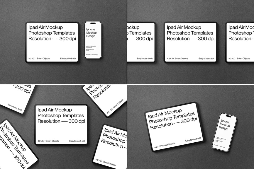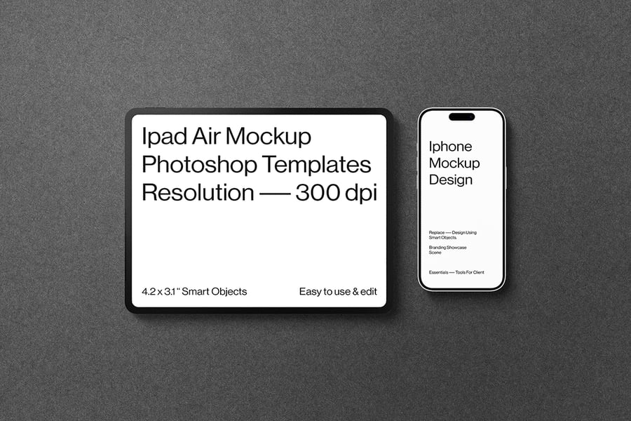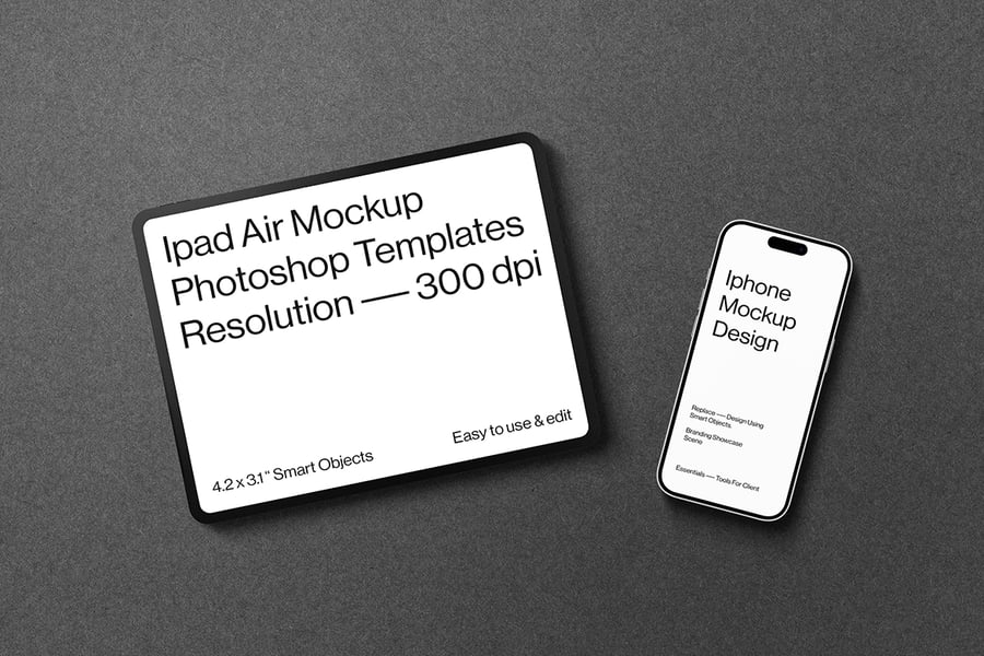 这款高分辨率模型展示了最新的 iPhone 17 和 iPad 设备,专为展示应用程序 UI、网站和品牌宣传而设计。这款现代化的模型采用智能对象,可快速自定义,并呈现简洁逼真的外观,非常适合专业设计预览。
