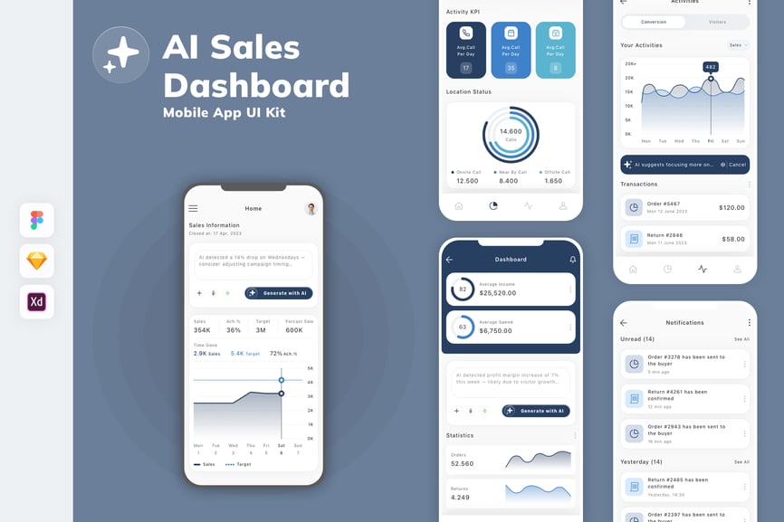 我们的 UI 工具包经过精心设计,可完美适配 Figma、Sketch 和 Adobe XD。所有文件都组织有序,命名规范,因此您可以轻松修改任何设计。