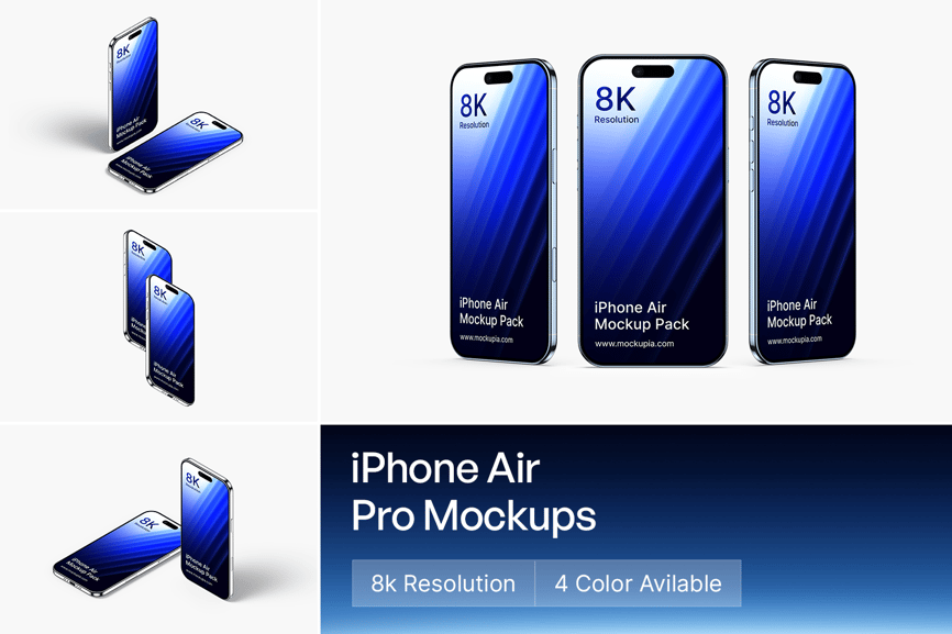 获取最新的 iPhone Air 模型,以简洁时尚的方式展示您的应用或设计。非常适合设计师在作品集、客户展示或网站上展示作品。
