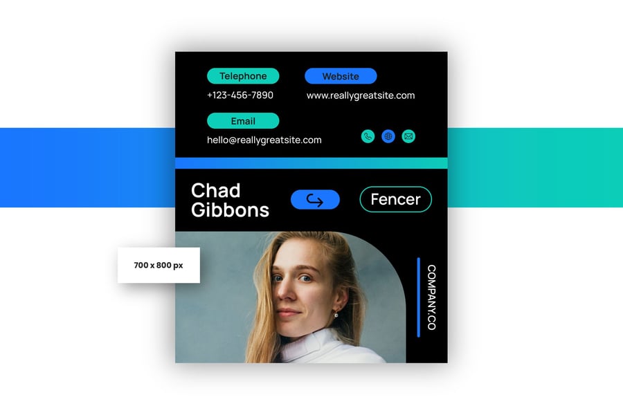 简洁专业的电子邮件签名设计,适用于商务或个人用途。一款设计提供三种不同尺寸,满足您的多种需求。现代、优雅、简洁的设计风格,令您的电子邮件签名更显专业。