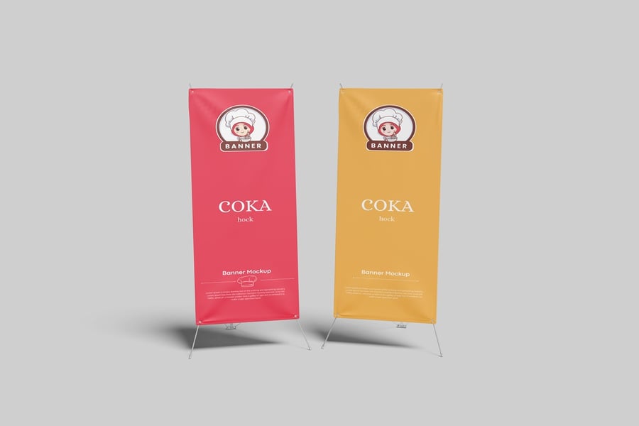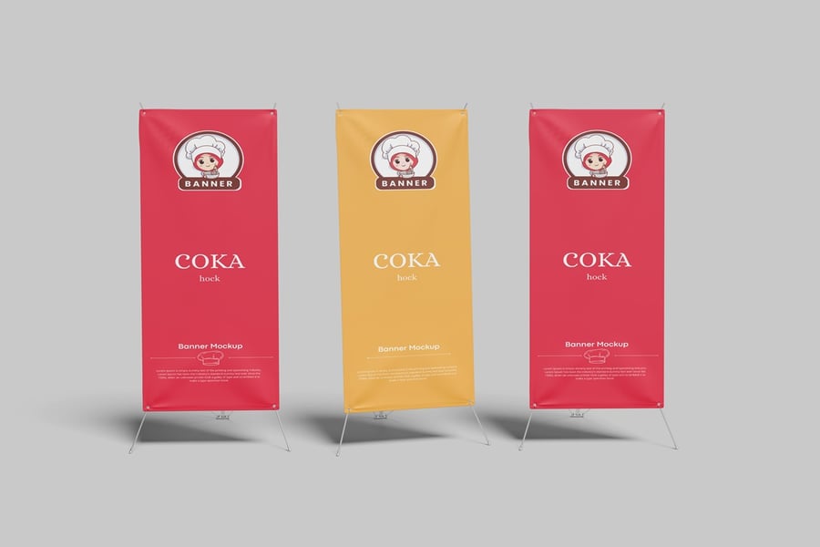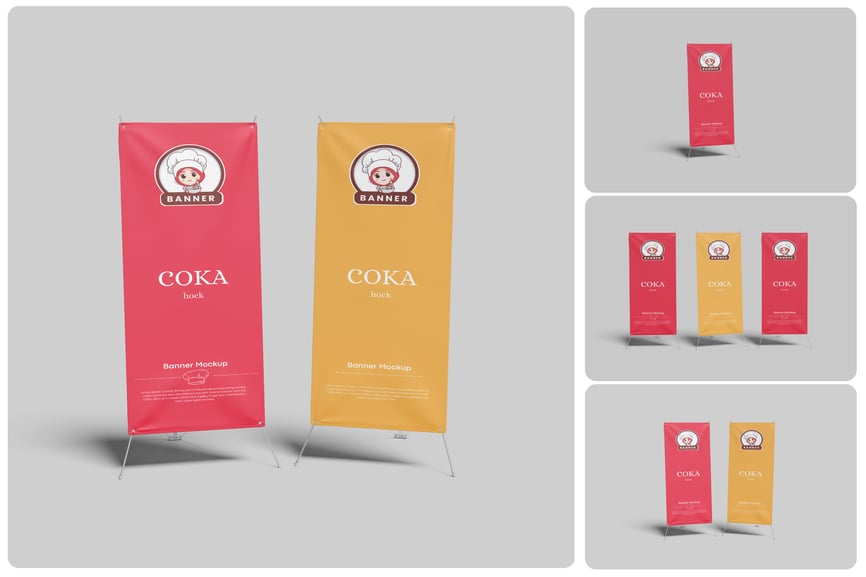 用这些精美的样机展示您的 X 型横幅样机设计。此样机包含 3 个元素,并提供分层清晰的 PSD 文件。此外,此样机还采用了智能对象功能,这意味着您只需几秒钟即可轻松快捷地将当前设计替换为您自己的设计。