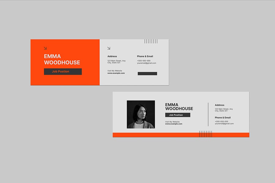 这款可编辑的邮件签名模板适用于任何类型的企业——从时尚零售到电商和公司用途。您可以轻松添加自己的照片、徽标、颜色和联系信息进行自定义。