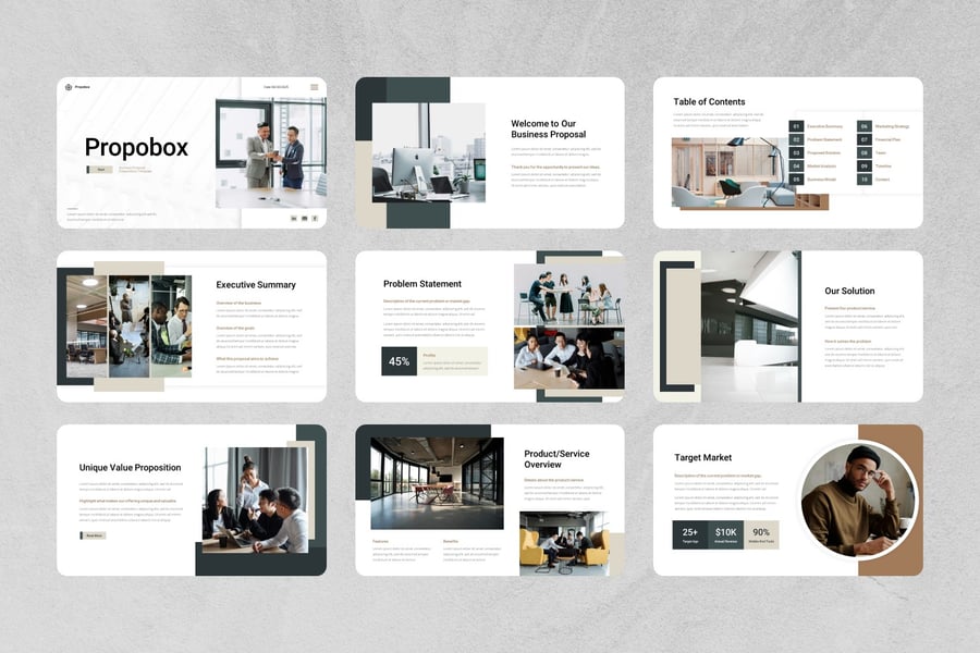 隆重推出**Propobox – 商业提案 Google 幻灯片模板**