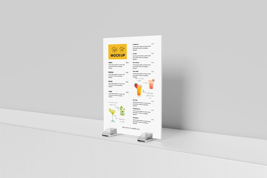用这些精美的样机展示您的高品质桌牌样机设计。此样机包含 4 个元素,并提供分层清晰的 PSD 文件。此外,该样机还采用了智能对象功能,这意味着您只需几秒钟即可轻松快捷地将当前设计替换为您自己的设计。