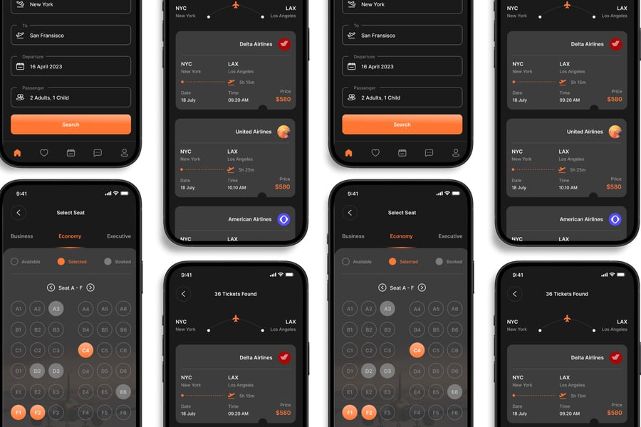 隆重推出 **预订机票** 移动应用 UI 套件,这是一款现代化且功能全面的解决方案,可助您创建简洁易用的应用界面。对于希望加快设计流程的设计师和开发者而言,这款 UI 套件堪称完美之选,它将您所需的所有基本组件整合在一个井然有序的软件包中。