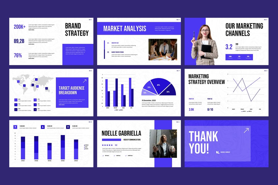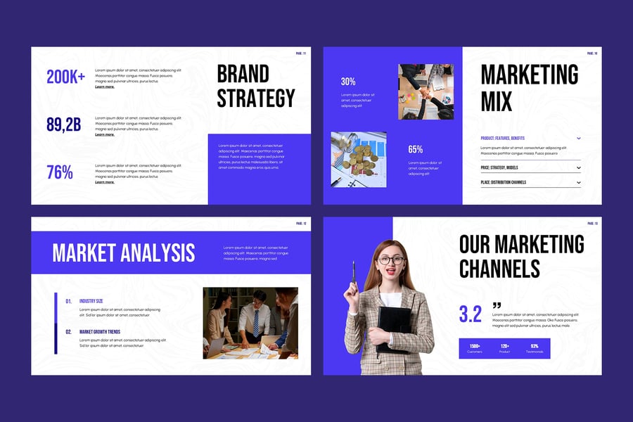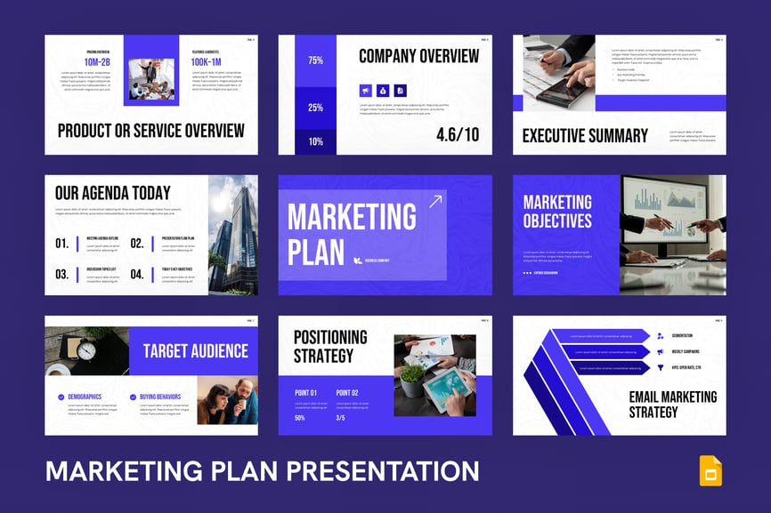 营销计划 Google 幻灯片演示模板是一款时尚、现代且完全可定制的模板,旨在帮助您清晰有效地展示您的业务营销策略。该模板非常适合营销人员、初创公司、业务顾问和企业团队,它提供简洁的布局、引人入胜的信息图表和专业的设计,让您的受众专注于您的要点。凭借独特的幻灯片、高质量的矢量图形、可编辑的图表和拖放式图像占位符,您无需任何设计技能,即可在几分钟内轻松创建一份全面的营销策略演示文稿。该模板在 Google 幻灯片中 100% 可编辑,确保品牌颜色、字体和内容的流畅自定义。