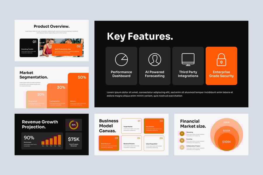 此演示模板可用于各种目的,例如:公司简介、企业、代理、金融、广告、数字营销、商业计划、提案、演示文稿、技术、工作室、项目、多用途、初创企业、行业,也可用于个人作品集。