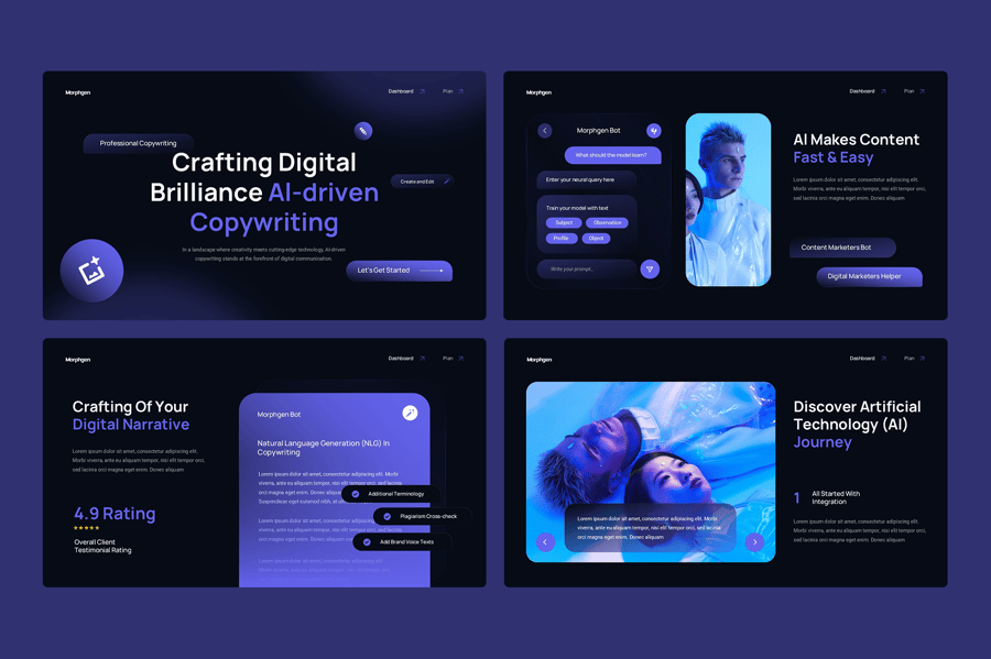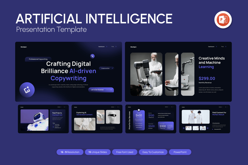 此演示文稿模板完全可编辑和自定义。此演示文稿还具有创意风格,适用于您的任何目的,例如:人工智能、人工智能、现代、科技、技术、推介、演示文稿、商业、未来主义、提示、应用、自动化、学习、文案、专业、渐变、创意、概念、设计、数据、智能、视觉、虚拟、现实、VR、数字、创新、未来、互联网、聊天机器人、机器、系统、聊天、演示、模板、PowerPoint、Google 幻灯片、主题演讲,也可用于任何其他发布,例如营销推广和公司简介